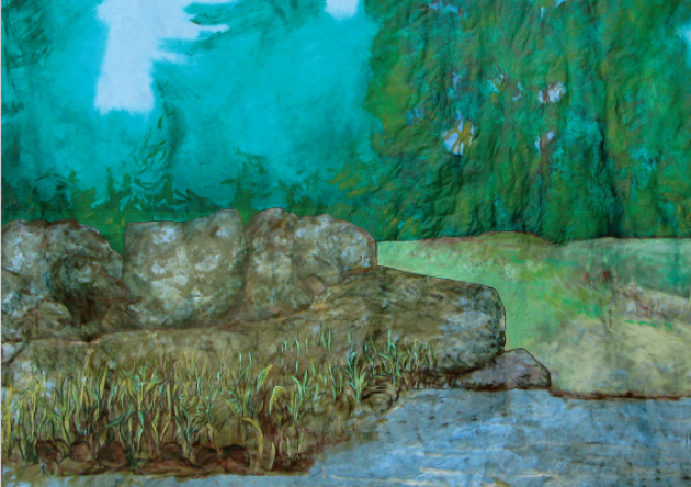 Elle revient au printemps pour montrer son travail de peinture au musée de la Vallée de la Creuse avec une sélection d’oeuvres choisies à différentes périodes de sa production. Elle nous invite dans des paysages intérieurs qui invitent à la rêverie, et qui nous renvoient à l’étrangeté du monde. Paysages imaginés qui s’affranchissent des codes d’une figuration réaliste.